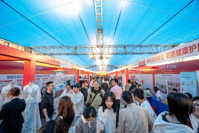 上午11时30分,招聘会接近尾声。现场一派供需两旺的景象。据初步统计,本次招聘会吸引线上、线下超1.1万余人参与应聘,达成初步求职意向1108人次。